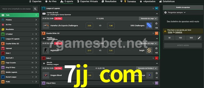 O 7jj com oferece uma grande seleção de opções de apostas em e-sports com probabilidades competitivas